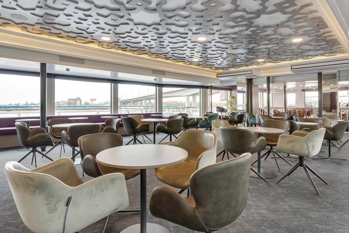 Panoramic Bar Nằm gần khu vực tiếp tân là nơi lý tưởng để chia sẻ những khoảnh khắc vui vẻ cùng các bạn đồng hành. Vào buổi tối, sàn nhảy đón chào những hành khách yêu thích khiêu vũ hoặc các nghệ sĩ được mời đến biểu diễn những buổi hòa nhạc truyền thống và các giai điệu đặc trưng.