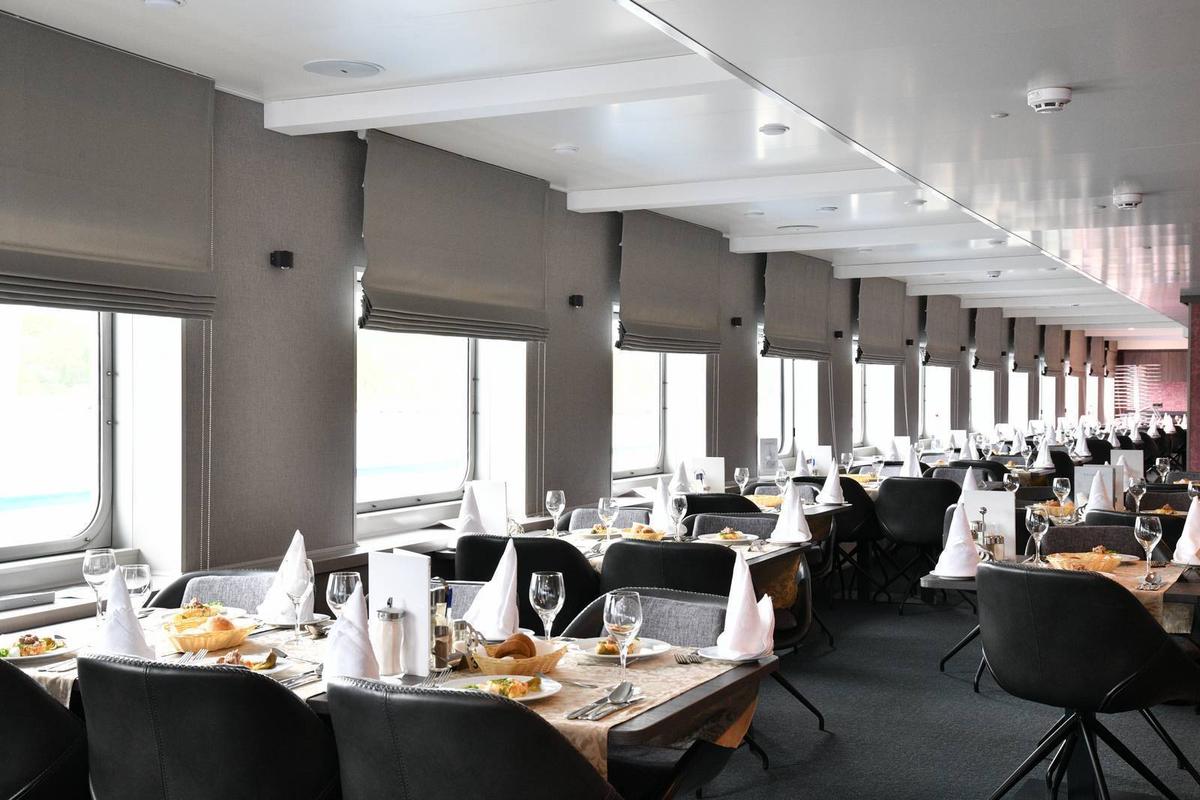 Ẩm thực: Tàu có hai nhà hàng, phục vụ các món ăn Nga và châu Âu.