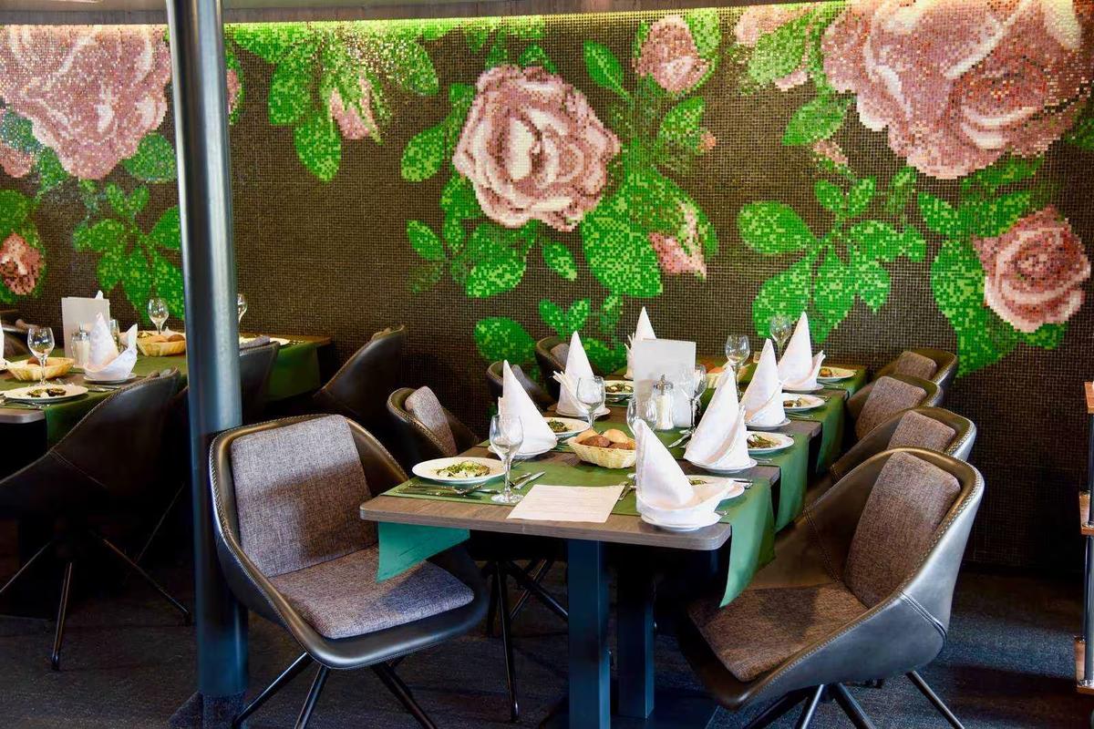 Nhà hàng phục vụ ẩm thực tinh tế và hấp dẫn, làm nổi bật hương vị ẩm thực địa phương. Bàn ăn được chuẩn bị chu đáo và đồ uống được phục vụ kèm theo trong suốt bữa ăn.
